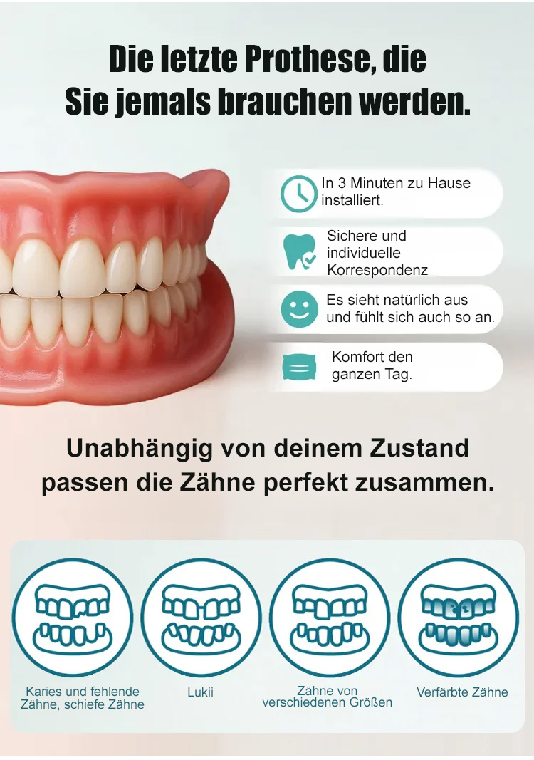 📜3-minütige Anbringung zu Hause, kein Zahnarzt nötig, kein Kleber erforderlich, 48 Stunden fester Halt, für ein natürliches und selbstbewusstes Lächeln 😊